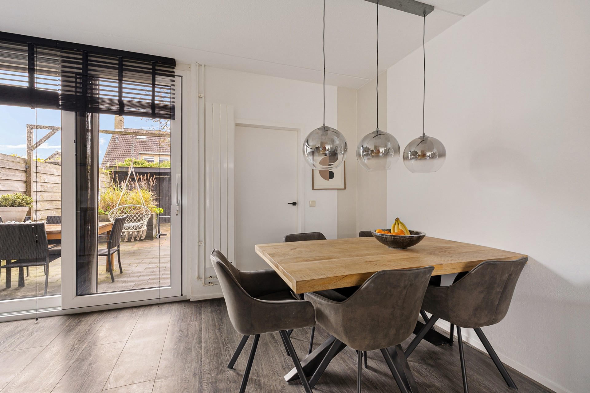 Via de entree kom je in de hal met toegang tot de lichte en ruime woonkamer. Aansluitend bevindt zich de moderne keuken, voorzien van diverse inbouwapparatuur en een schuifpui. De bijkeuken beschikt over een wasmachine- en drogeraansluiting, vlizotrap naar vliering en een deur naar de achtertuin.