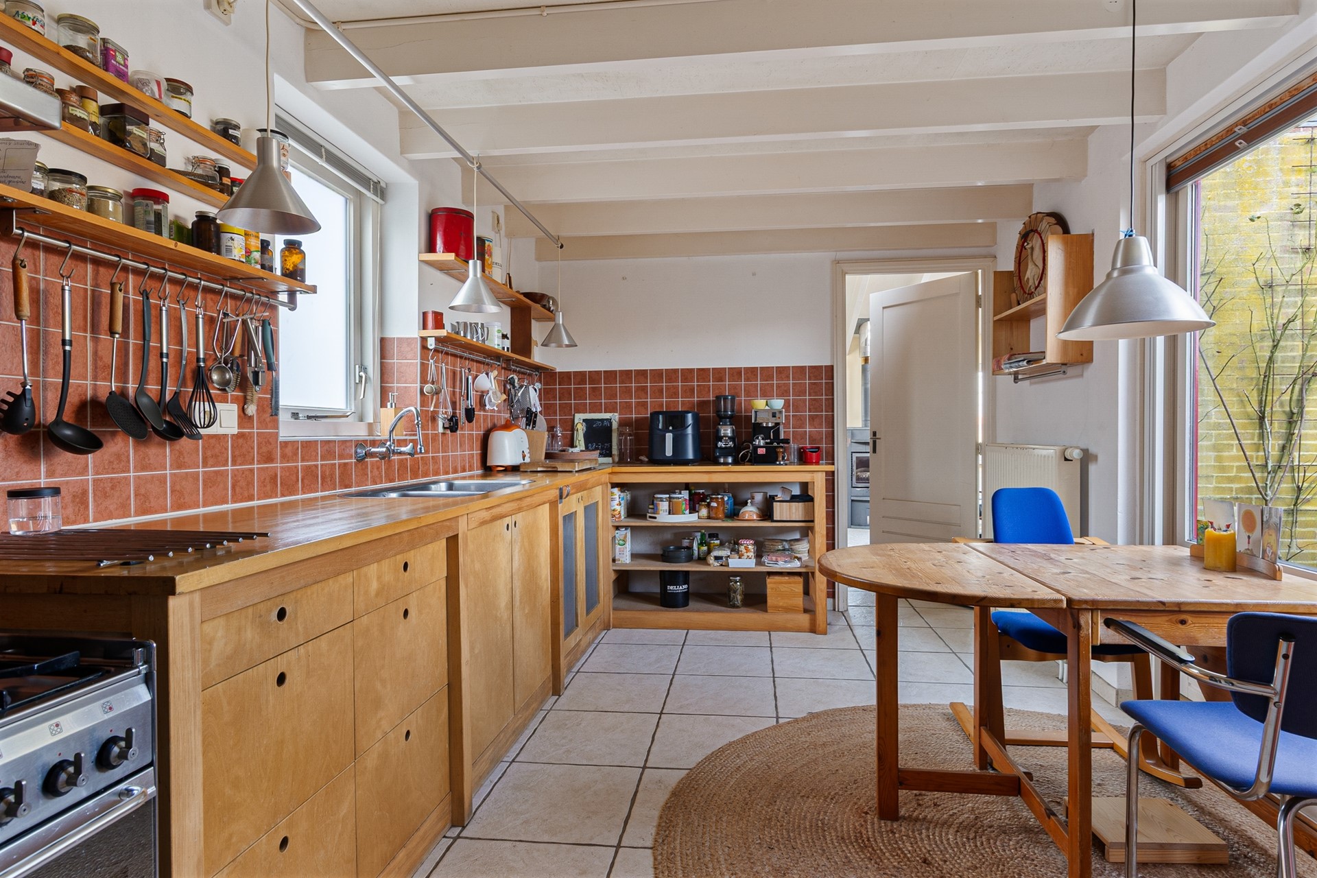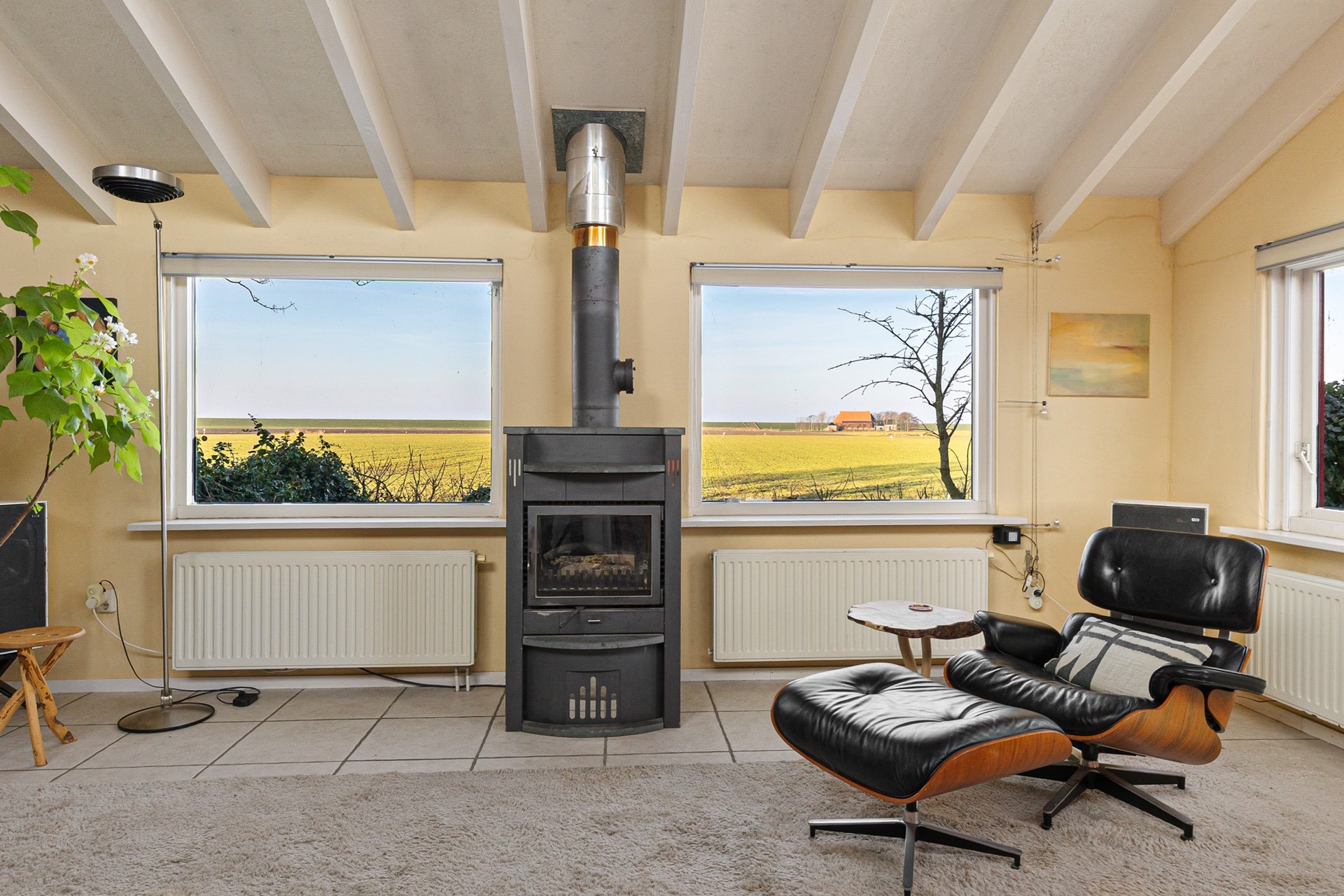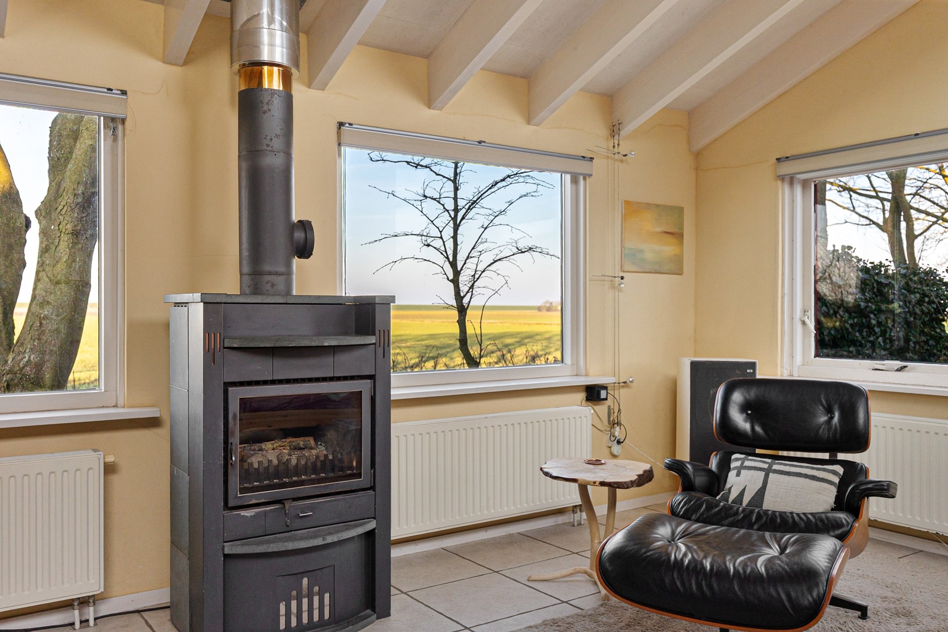 Vanuit de keuken is er toegang tot een achterkamer/woonkamer met houtkachel en een schitterend vrij uitzicht over de landerijen.
