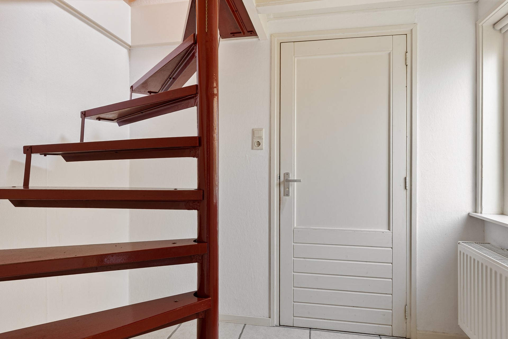 Op de eerste verdieping bevindt zich een slaapkamer met drie grote Velux dakramen. Daarnaast is hier een aanrecht met gootsteen aanwezig.