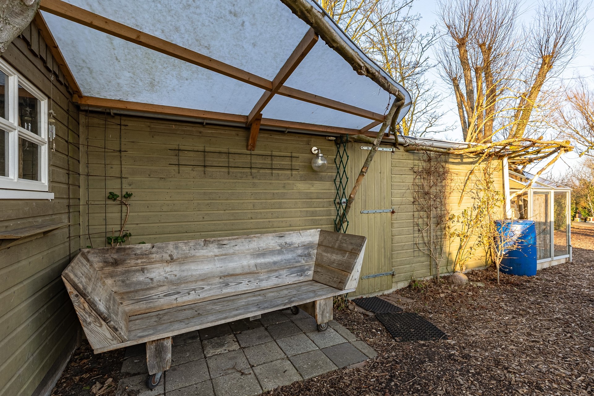 De ruime tuin biedt volop mogelijkheden. Op het perceel bevinden zich een houtopslag, een carport en een vrijstaand geïsoleerd atelier. Het atelier beschikt tevens over een sauna en een berging met betonvloer, elektra en een verdieping. Via de tuin is ook de kelder bereikbaar, ideaal voor opslag.