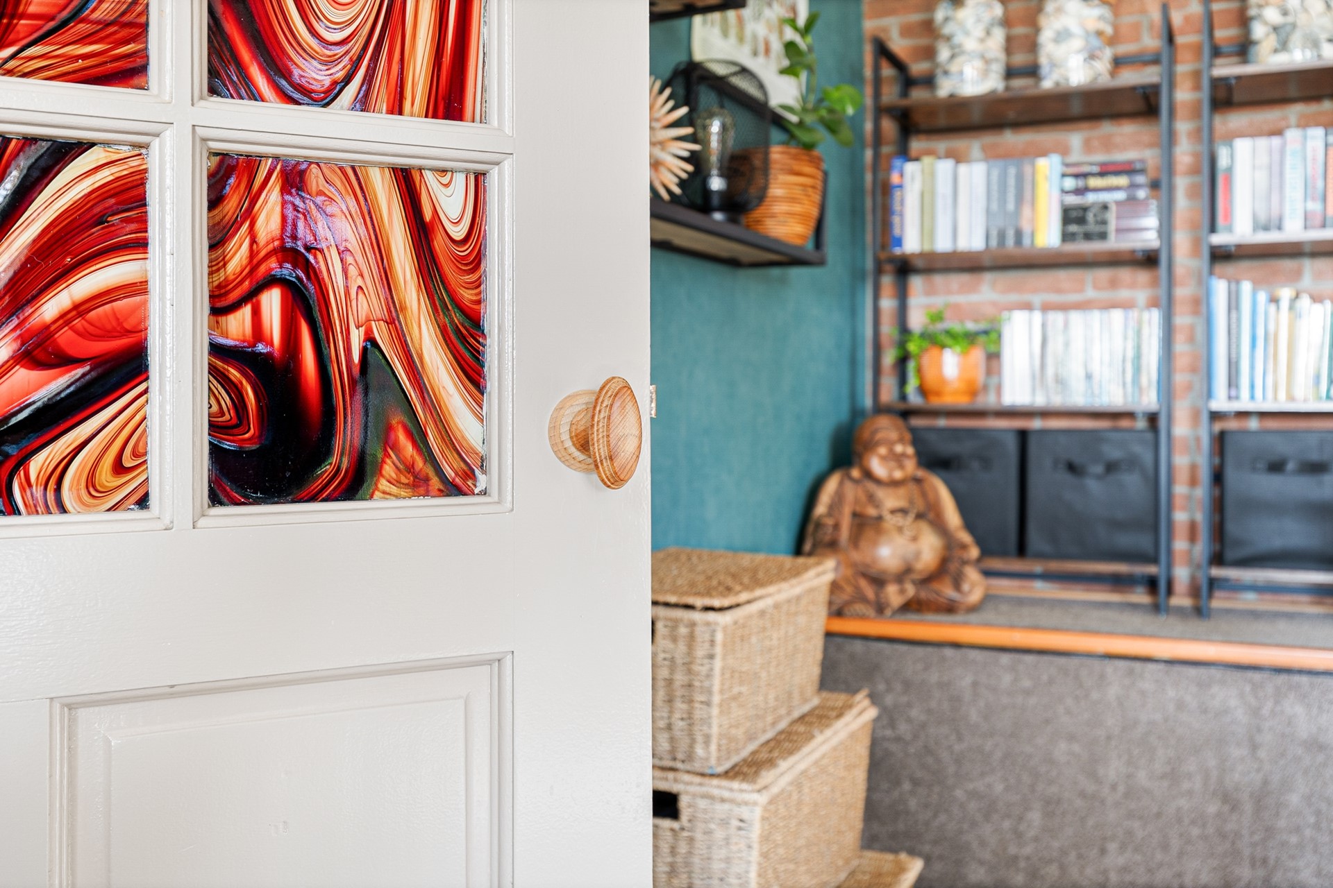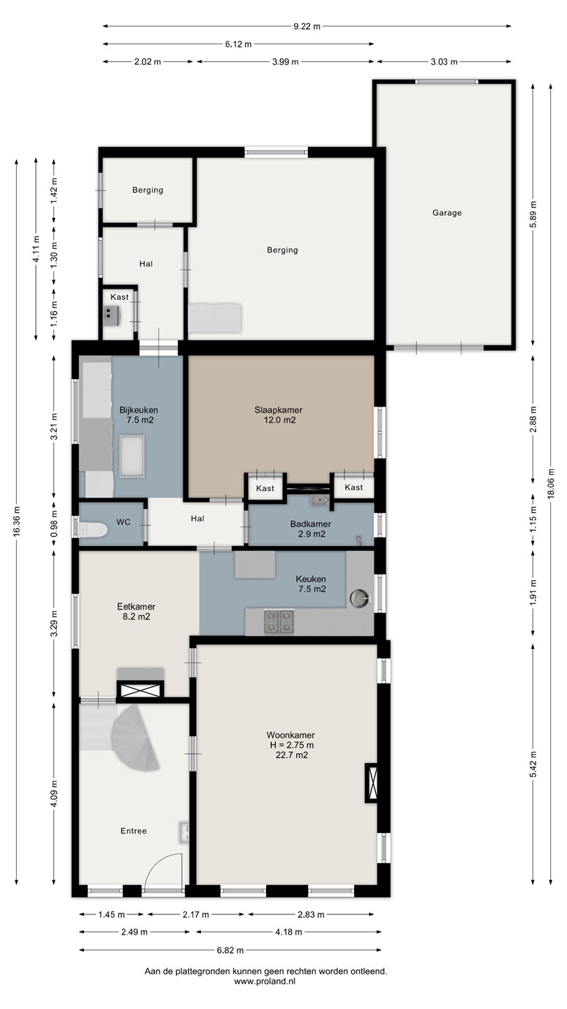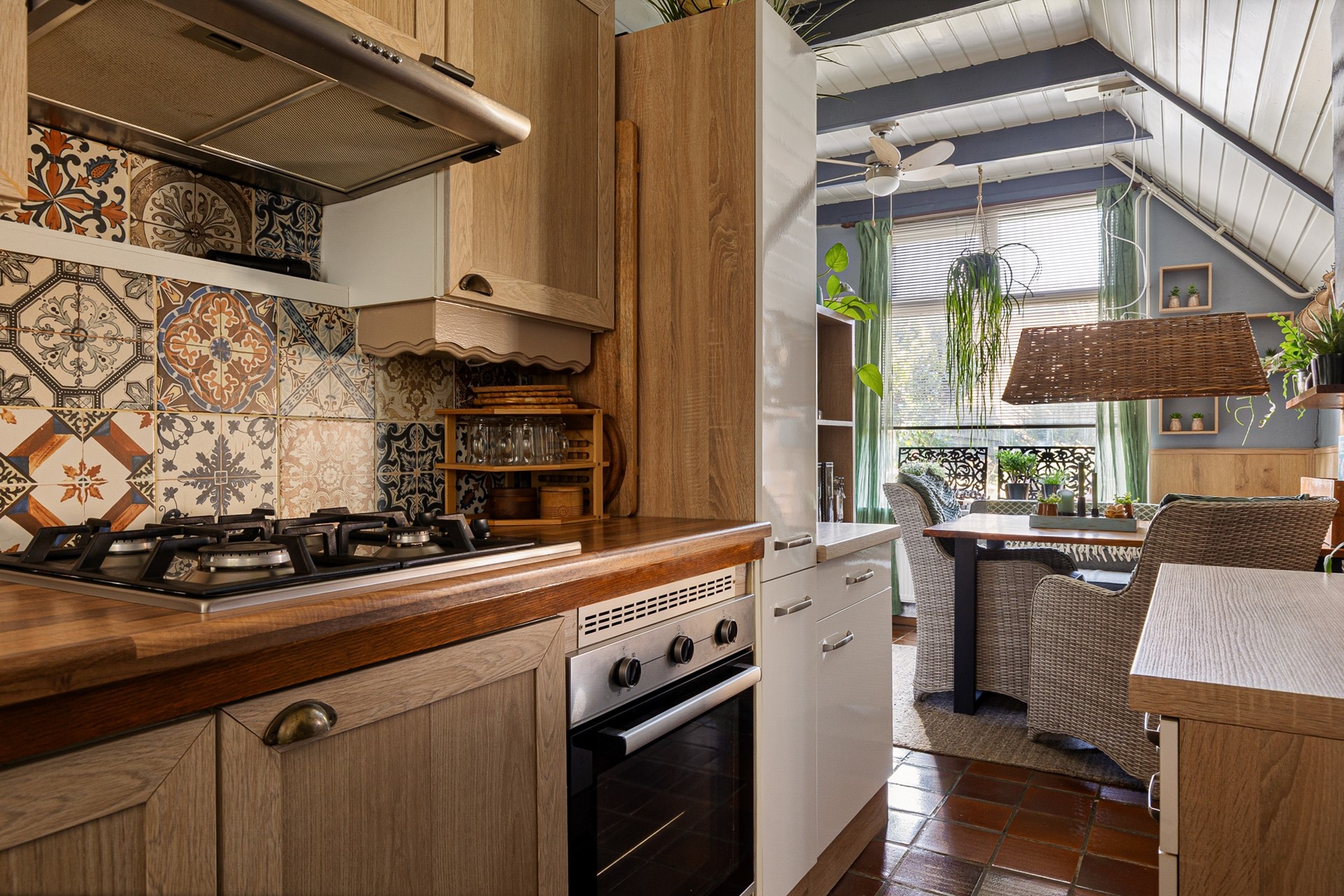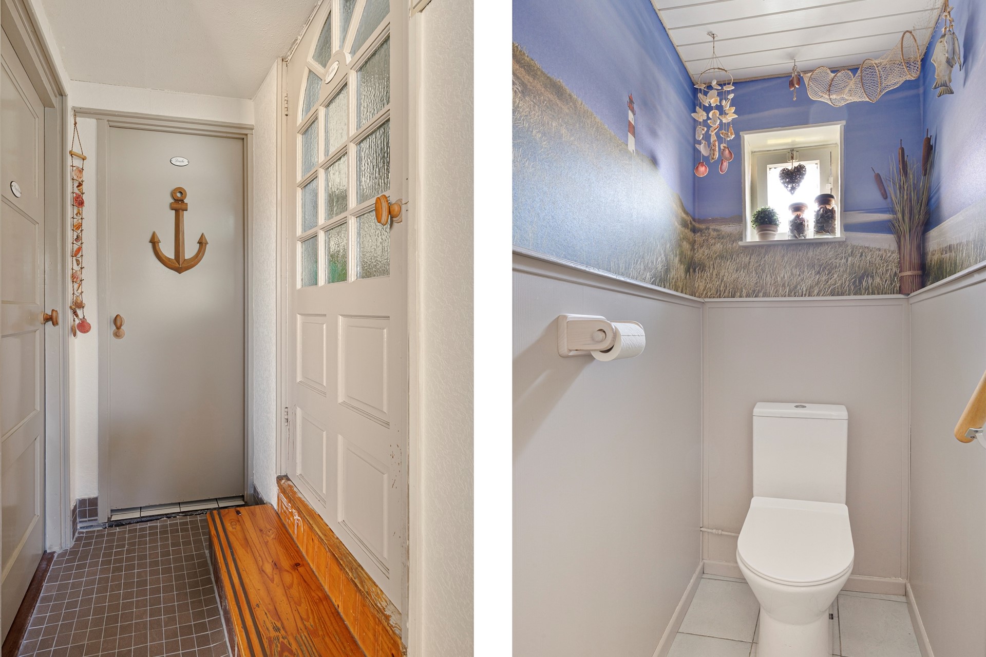 Verder is via de achterste hal de bijkeuken bereikbaar. De bijkeuken beschikt over een wasmachineaansluiting en een luik met losse trap naar een praktische bergzolder. Achter de bijkeuken bevindt zich de berging met opstelling voor de C.V.-ketel (Intergas 2024) en een deur naar de tuin.