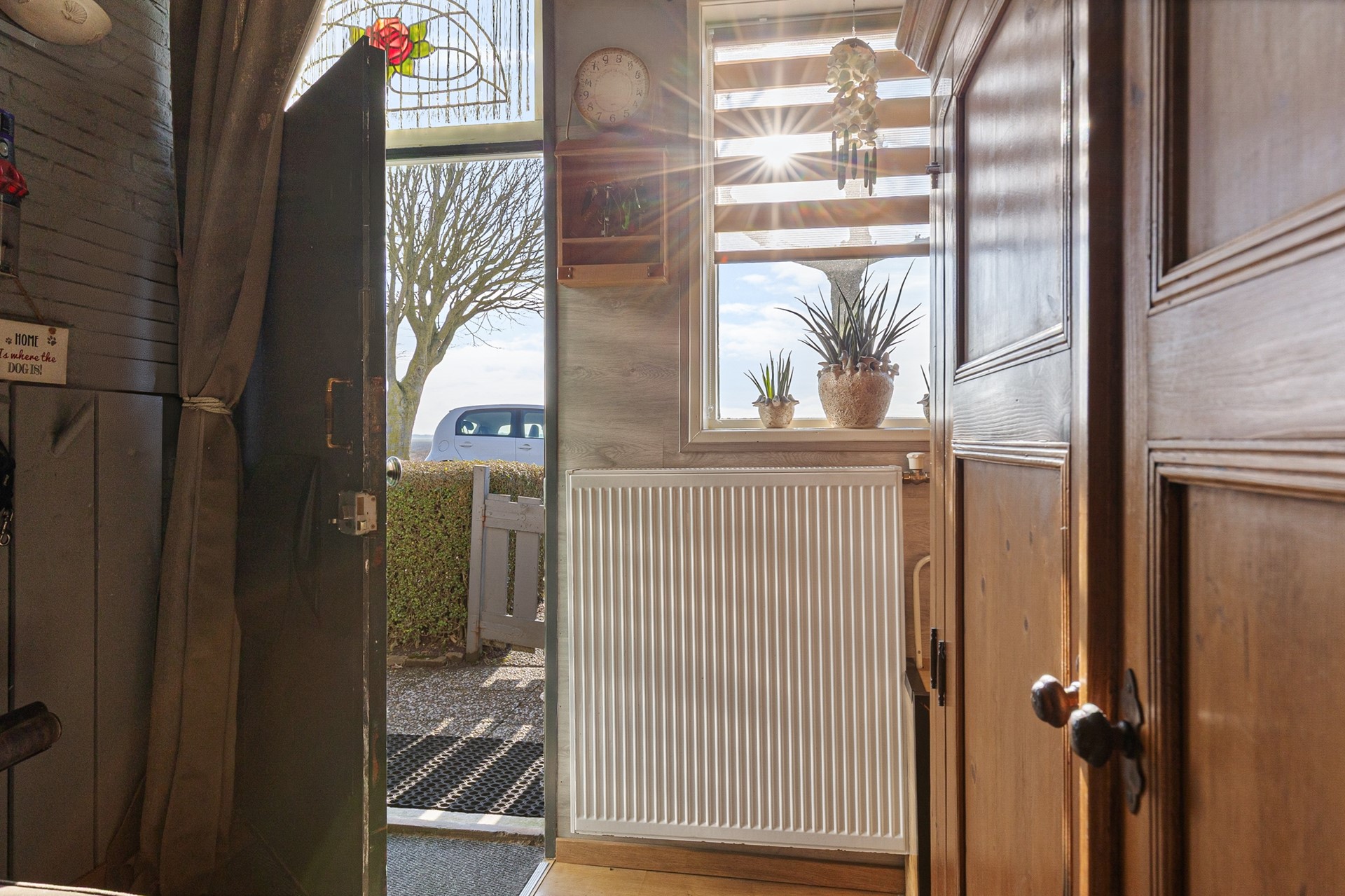 Via de voorentree kom je in de hal met trapopgang naar de eerste verdieping. Vanuit hier bereik je de woonkamer met schouw en veel lichtinval.