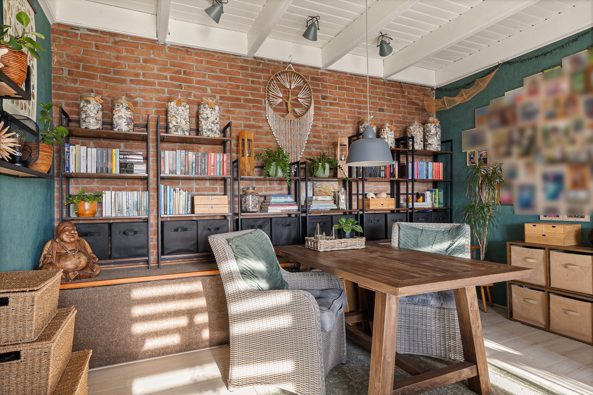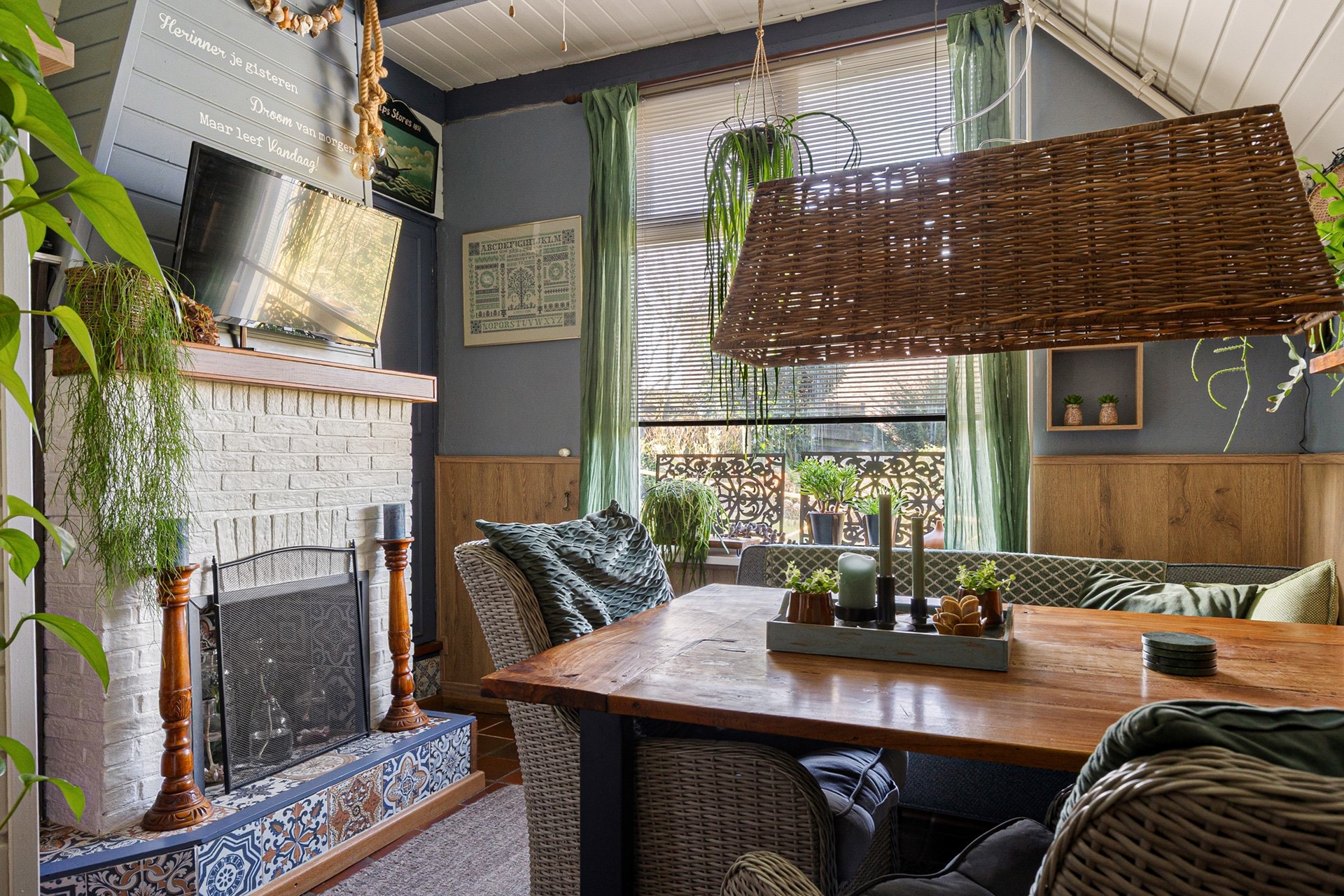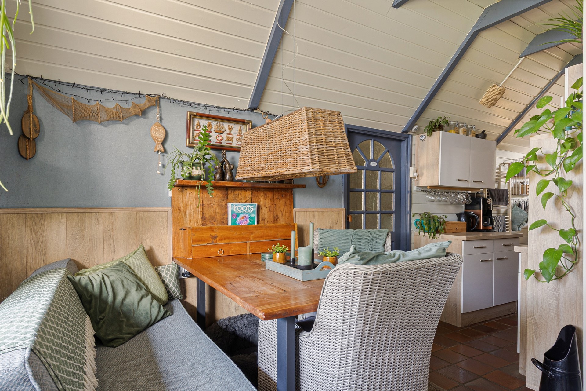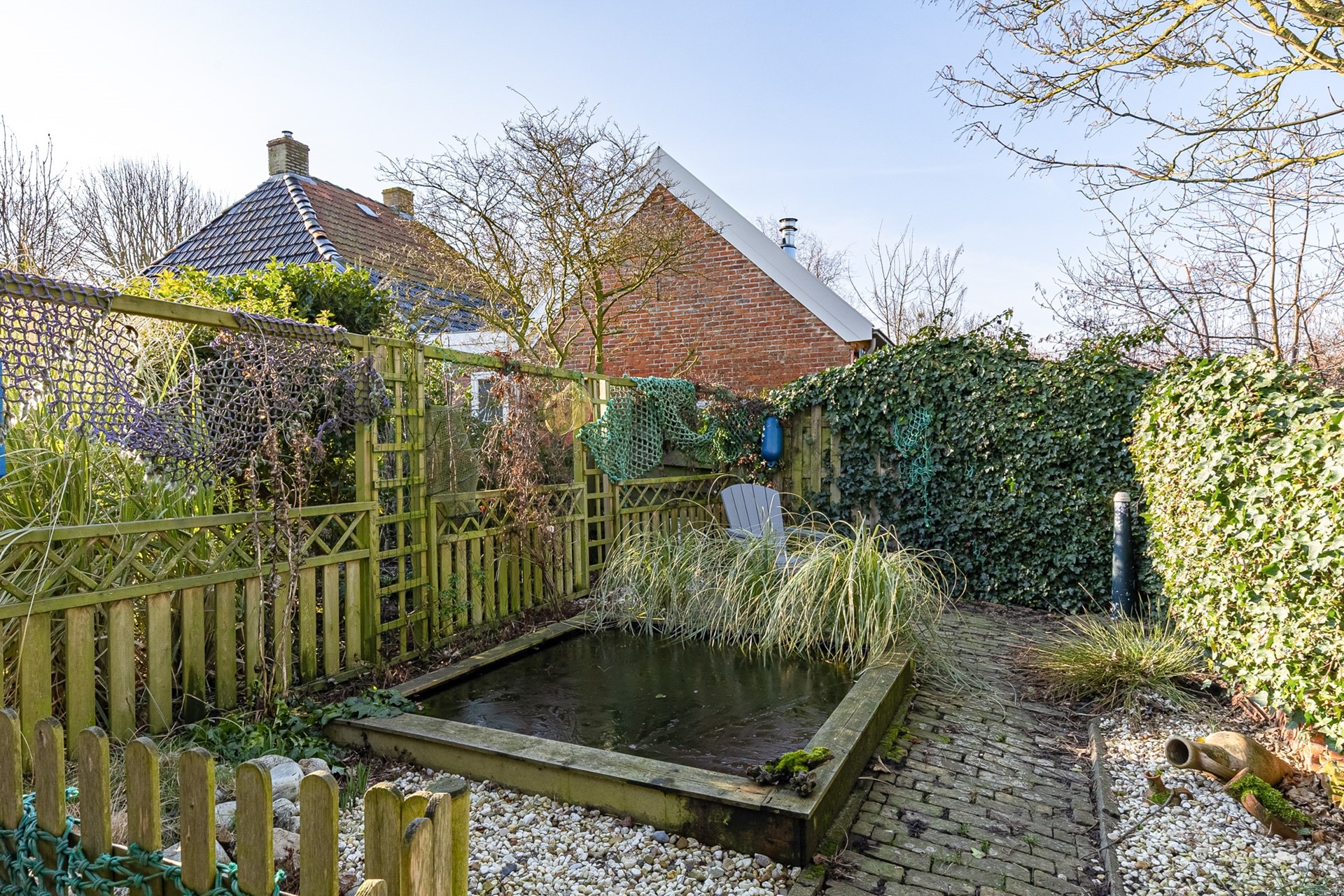 De woning beschikt over een ruime tuin aan de zijkant van de woning met terras, vijverpartij en aangebouwde houten garage. Hier kun je heerlijk buiten zitten en genieten van de rustige, landelijke omgeving.