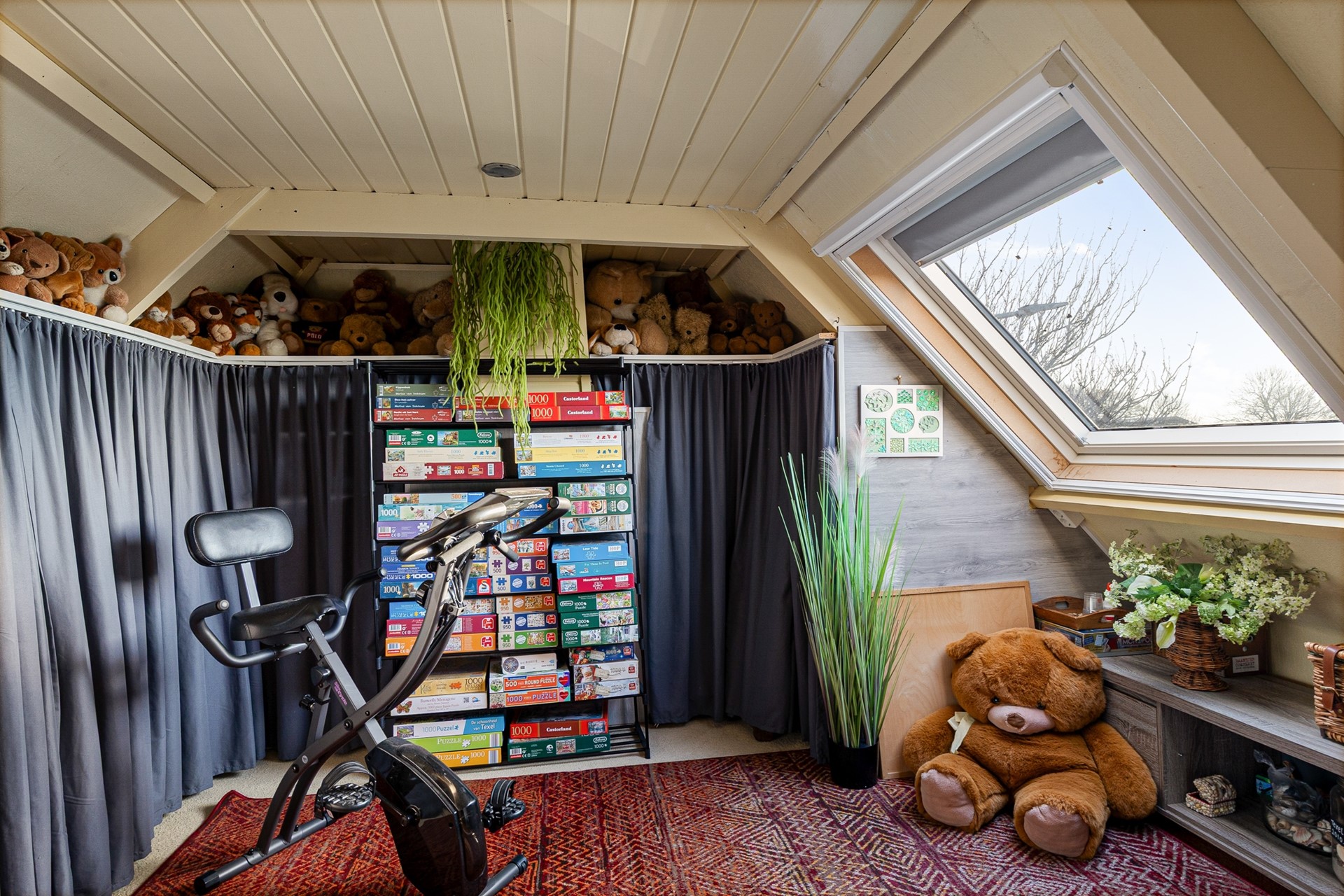 Op de verdieping is nog een slaapkamer met dakraam. Op de overloop is extra bergruimte aanwezig.